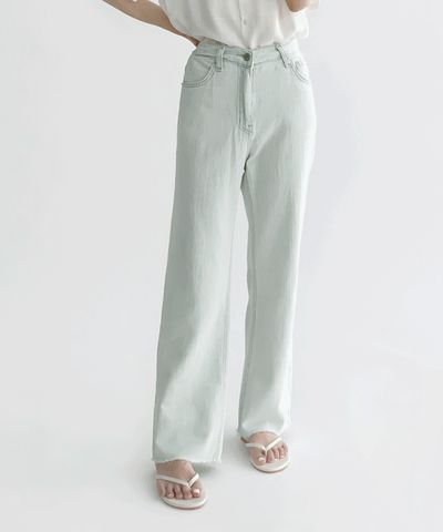 [ふわふわ~]ドゥイ リネン 麻デニム 裏バンディング ワイドパンツ / 夏 涼しい クーリング 長ズボン バンド ロングパンツ ストレートパンツ ライトブルー ミディアムブルー 基本アイテム ゴム紐 デイリールック 女性 女子 ジーンズ